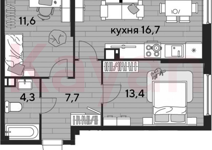 Продажа 2-комн. квартиры, 53.7 кв.м