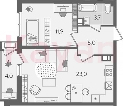 Продажа 2-комн. квартиры, 43.6 кв.м