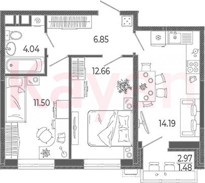 Продажа 2-комн. квартиры, 49.24 кв.м