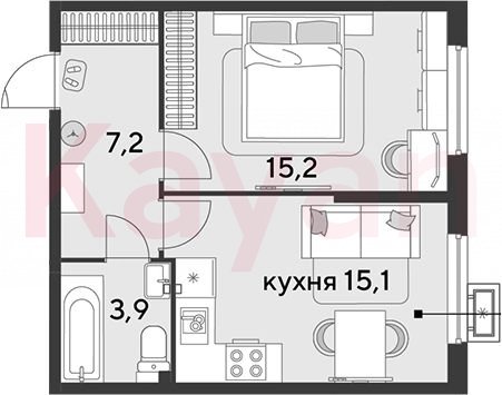Продажа 2-комн. квартиры, 41.4 кв.м