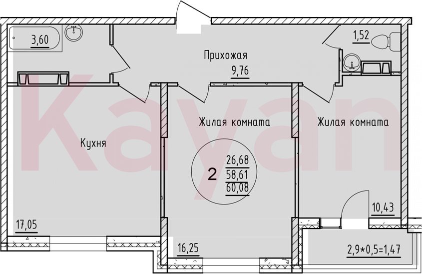 Продажа 2-комн. квартиры, 58.61 кв.м