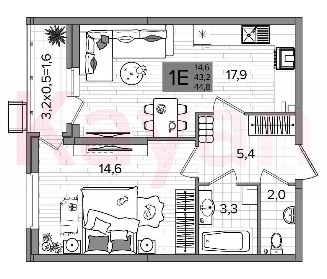 Продажа 2-комн. квартиры, 43.2 кв.м