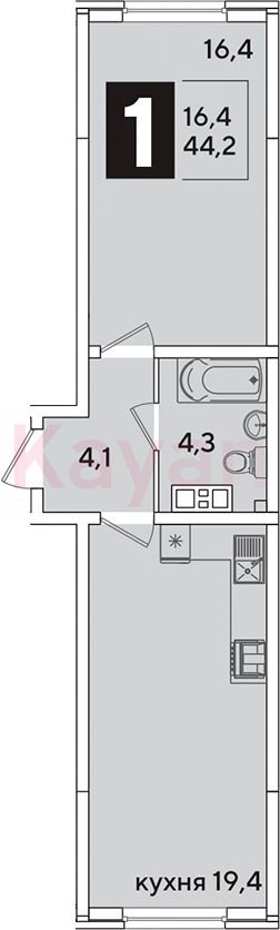 Квартира в ЖК Самолет (DOGMA. Краснодар) литер 35 очередь 6, Кирпично-монолитный, 2 к.кв., 44.2 кв.м., 9/16, высота потолков: 2.89 м, жилая площадь: 16.4 кв.м., возможна ипотека, возможна военная ипотека, площадь кухни 19.4 кв.м.,