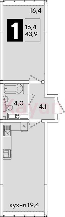 Продажа 2-комн. квартиры, 43.9 кв.м