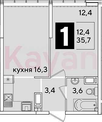 Продажа 2-комн. квартиры, 35.7 кв.м