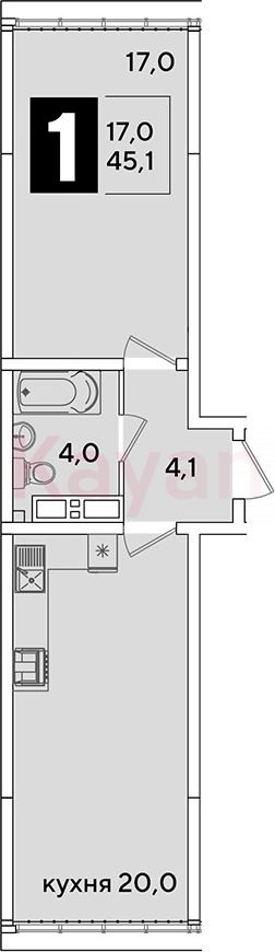 Продажа 2-комн. квартиры, 45.1 кв.м