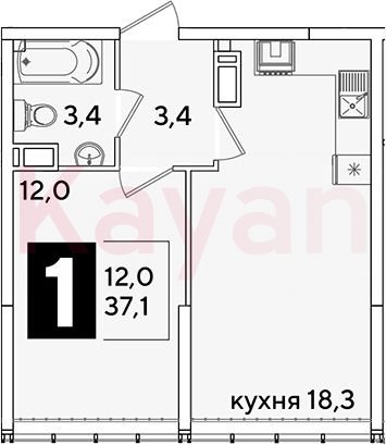 Продажа 2-комн. квартиры, 37.1 кв.м