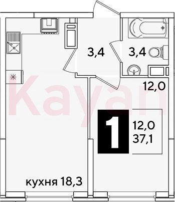Продажа 2-комн. квартиры, 37.1 кв.м
