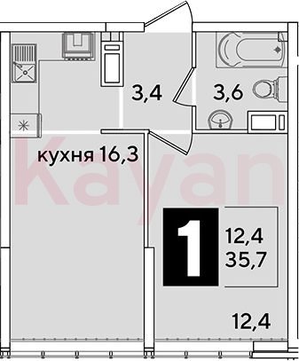 Продажа 2-комн. квартиры, 35.7 кв.м