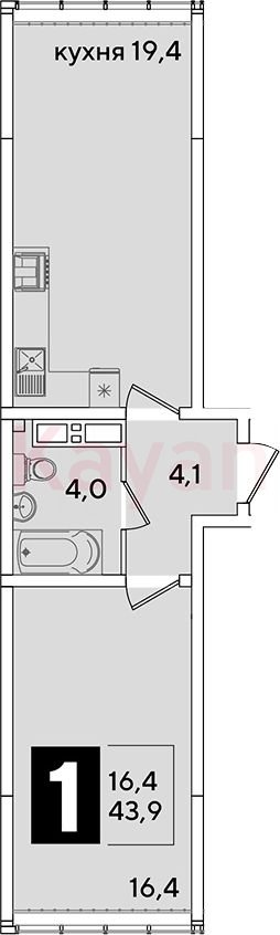 Продажа 2-комн. квартиры, 43.9 кв.м