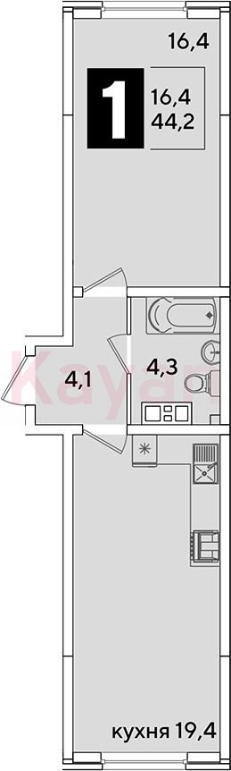Продажа 2-комн. квартиры, 44.2 кв.м