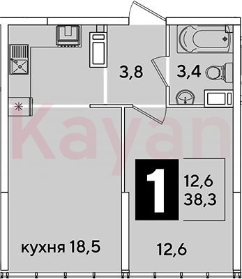 Продажа 2-комн. квартиры, 38.3 кв.м