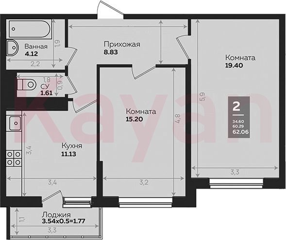 Продажа 2-комн. квартиры, 60.49 кв.м