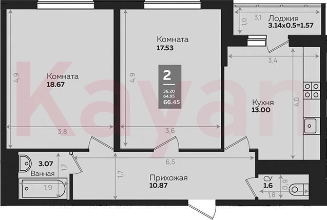 Продажа 2-комн. квартиры, 64.75 кв.м