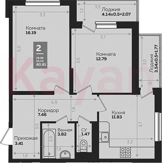 Продажа 2-комн. квартиры, 56.93 кв.м