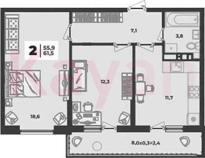 Продажа 2-комн. квартиры, 53.5 кв.м