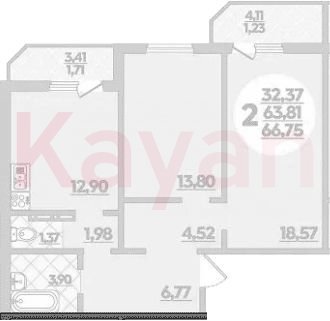 Продажа 2-комн. квартиры, 63.81 кв.м