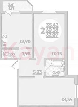 Продажа 2-комн. квартиры, 60.38 кв.м