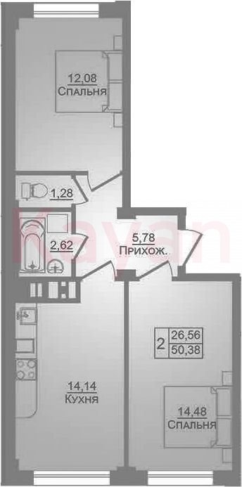 Продажа 2-комн. квартиры, 50.38 кв.м