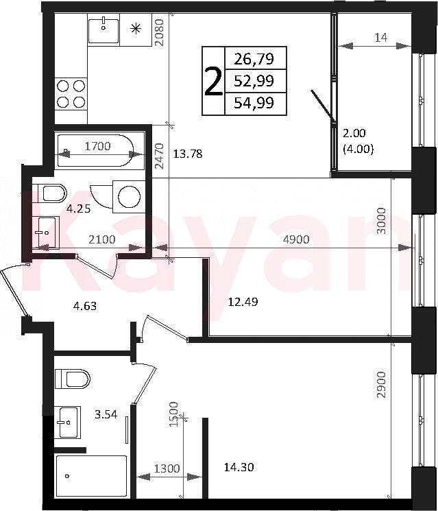 Продажа 2-комн. квартиры, 52.99 кв.м