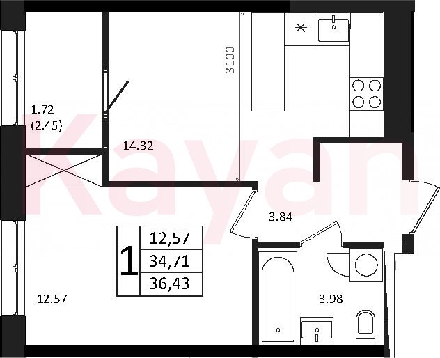 Продажа 2-комн. квартиры, 34.71 кв.м
