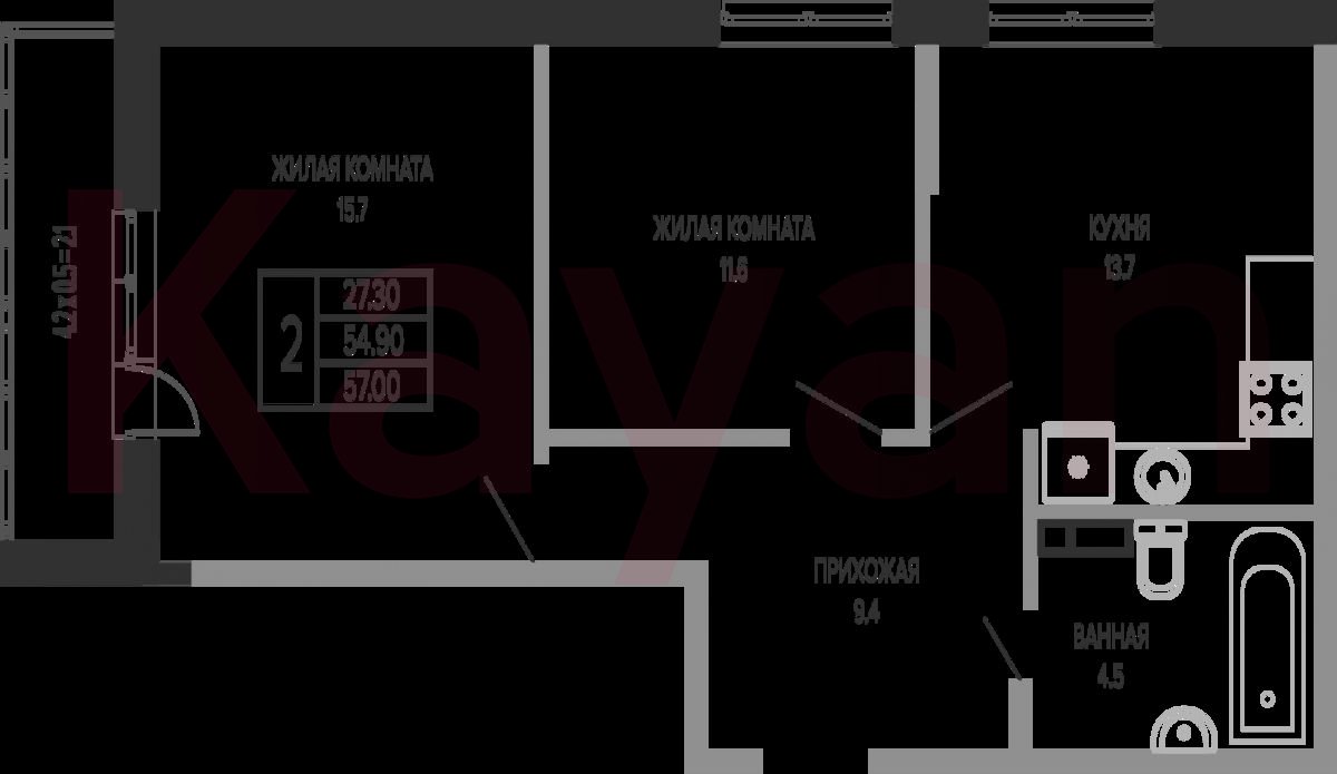Продажа 2-комн. квартиры, 54.9 кв.м