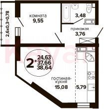 Продажа 2-комн. квартиры, 37.66 кв.м