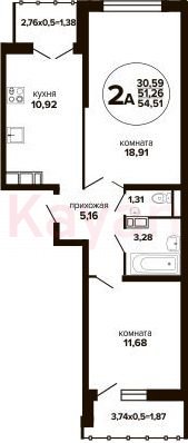 Продажа 2-комн. квартиры, 51.26 кв.м