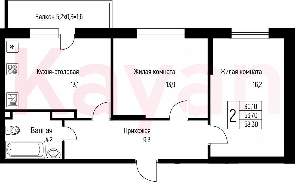 Продажа 2-комн. квартиры, 59.5 кв.м
