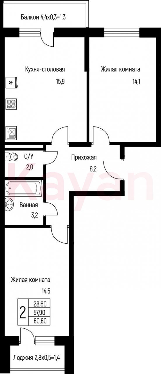 Продажа 2-комн. квартиры, 60.9 кв.м