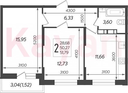Продажа 2-комн. квартиры, 50.27 кв.м