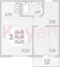 Продажа 2-комн. квартиры, 44.2 кв.м
