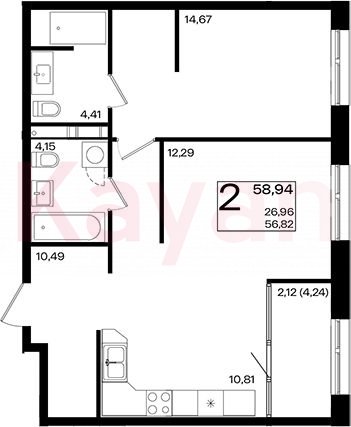 Продажа 2-комн. квартиры, 56.82 кв.м