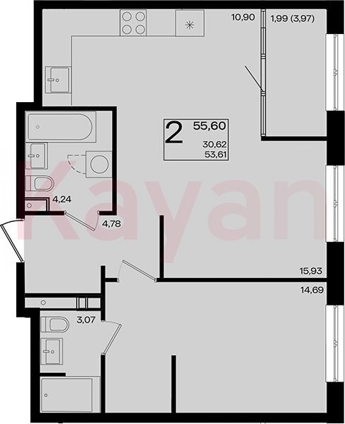 Продажа 2-комн. квартиры, 53.61 кв.м
