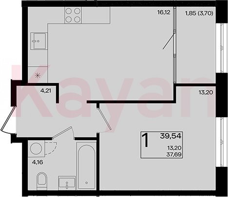 Продажа 2-комн. квартиры, 37.69 кв.м