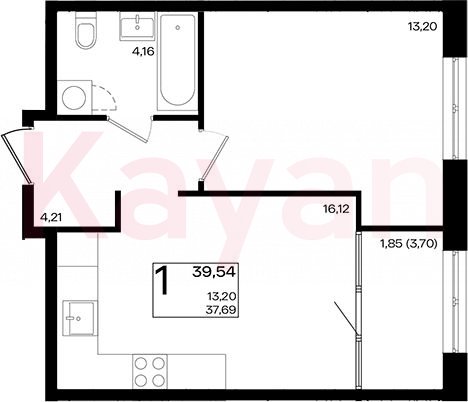 Продажа 2-комн. квартиры, 37.69 кв.м