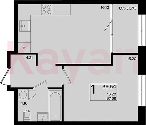 Продажа 2-комн. квартиры, 37.69 кв.м