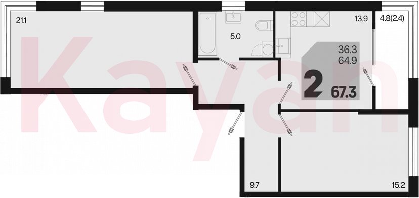 Продажа 2-комн. квартиры, 64.9 кв.м