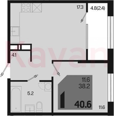 Продажа 2-комн. квартиры, 38.2 кв.м