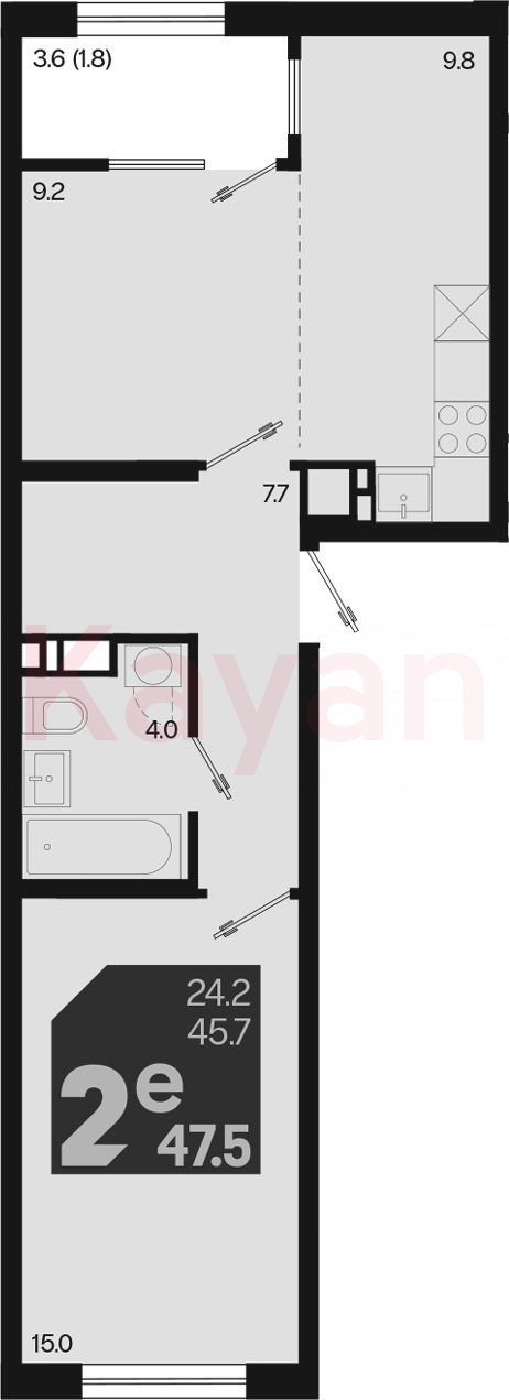 Продажа 2-комн. квартиры, 45.7 кв.м
