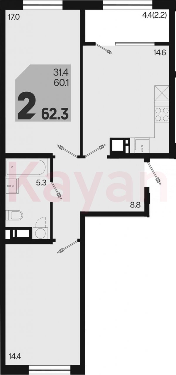 Продажа 2-комн. квартиры, 60.1 кв.м