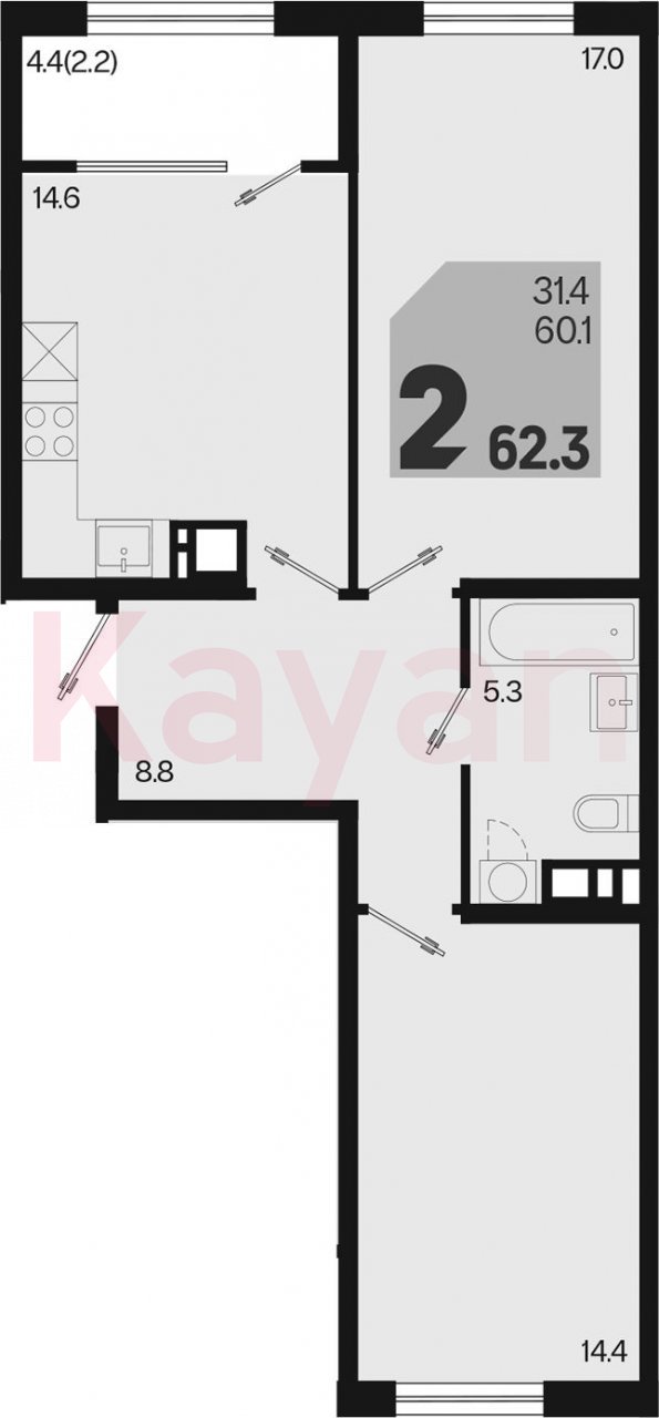 Продажа 2-комн. квартиры, 60.1 кв.м