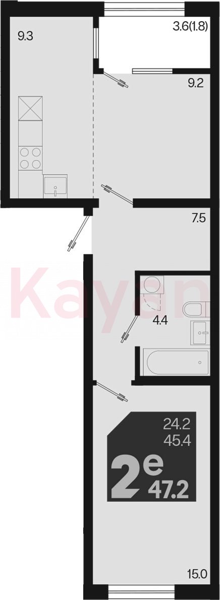 Продажа 2-комн. квартиры, 45.4 кв.м