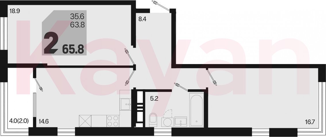 Квартира в ЖК «Первое место» (ГК Точно. Краснодарский край) литер 1.10 Л1 очередь 1, Монолитный, 2 к.кв., 63.8 кв.м., 15/18, высота потолков: 2.66 м, жилая площадь: 35.6 кв.м., возможна ипотека, возможна военная ипотека, площадь кухни 14.6 кв.м.,