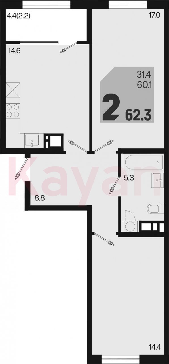 Продажа 2-комн. квартиры, 60.1 кв.м