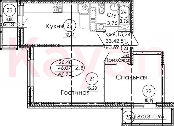 Продажа 2-комн. квартиры, 46.07 кв.м