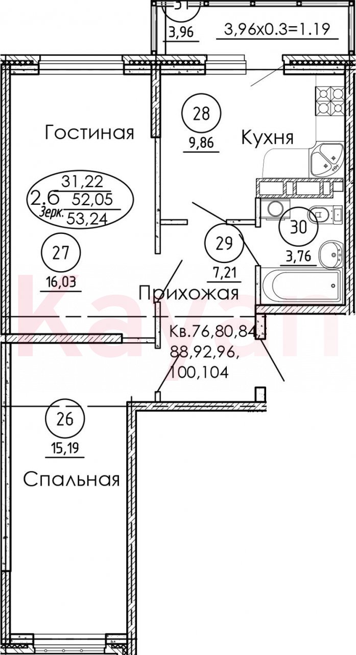 Продажа 2-комн. квартиры, 52.05 кв.м