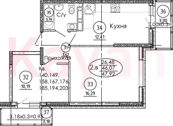 В проекте предложено два планировочных решения: 1-, 2-комнатные квартиры классического типа. Сдаются они с подчистовой отделкой, стандартными окнами и высотой потолков 2,75 метра. Планировка квартир выполнена с использованием зонального принципа: выделена зона дневного пребывания, общая для всех членов семьи, хозяйственно-бытовые зоны и спальни. В каждой квартире предусмотрен застекленный балкон.