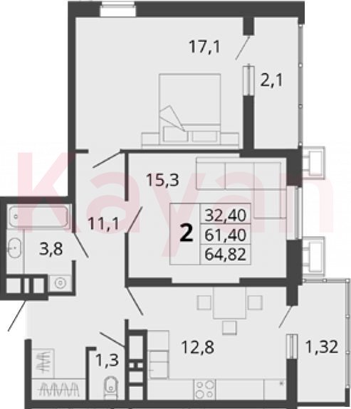 Продажа 2-комн. квартиры, 61.4 кв.м