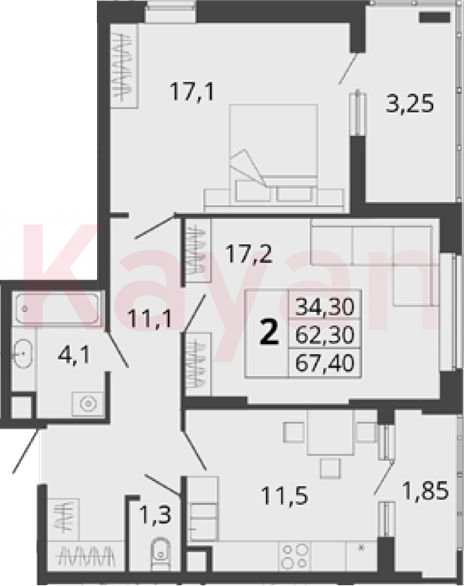 Продажа 2-комн. квартиры, 62.3 кв.м